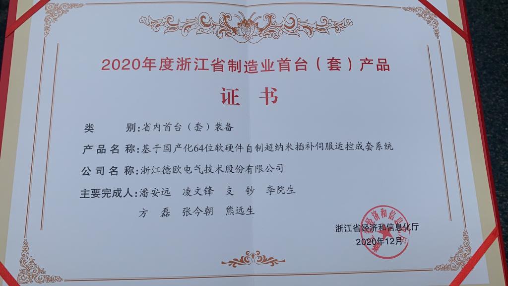 图1 技术协助产品研发获2020年度省级首台套认定