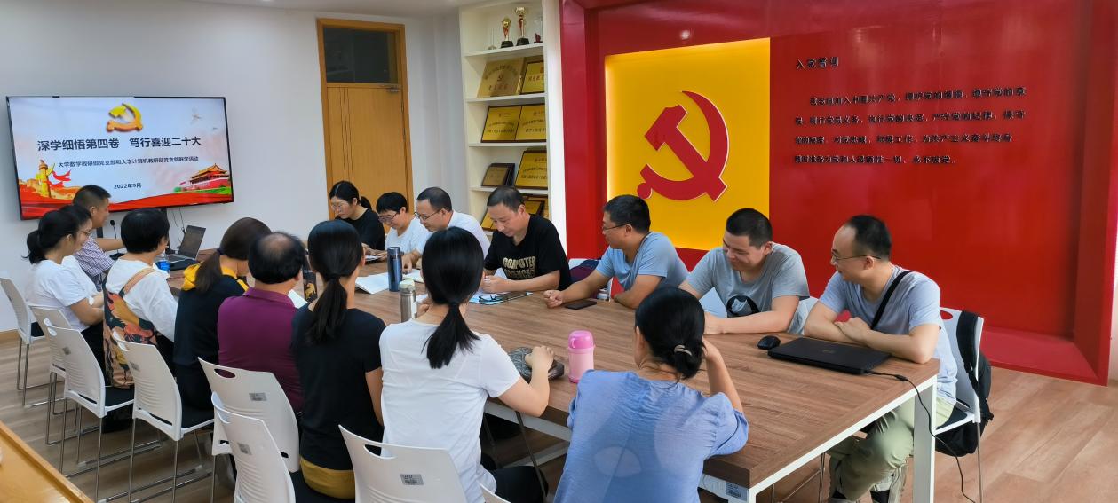 (机械工程学院)大学计算机教研部与数据科学学院大学数学教研部开展题为“深学细悟第四卷笃行喜迎党的二十大”的政治理论联学活动。活动由大学数学教研部党支部书记陈明老师主持。