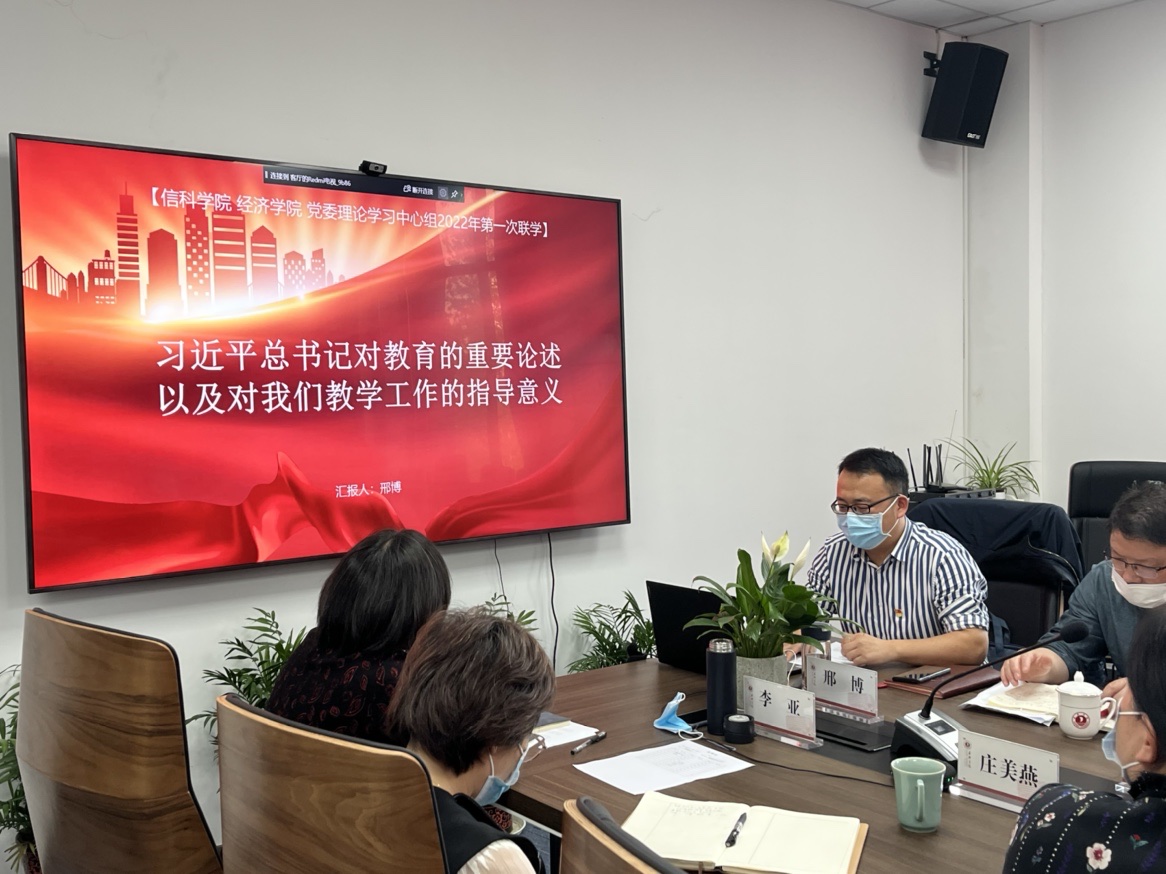 本次联学以“深入学习领会习近平总书记关于教育的重要论述与重要指示批示精神,促进学校教育事业高质量发展”为主题进行集体学习交流,我院副院长邢博、经济学院副院长李亚作主题发言。