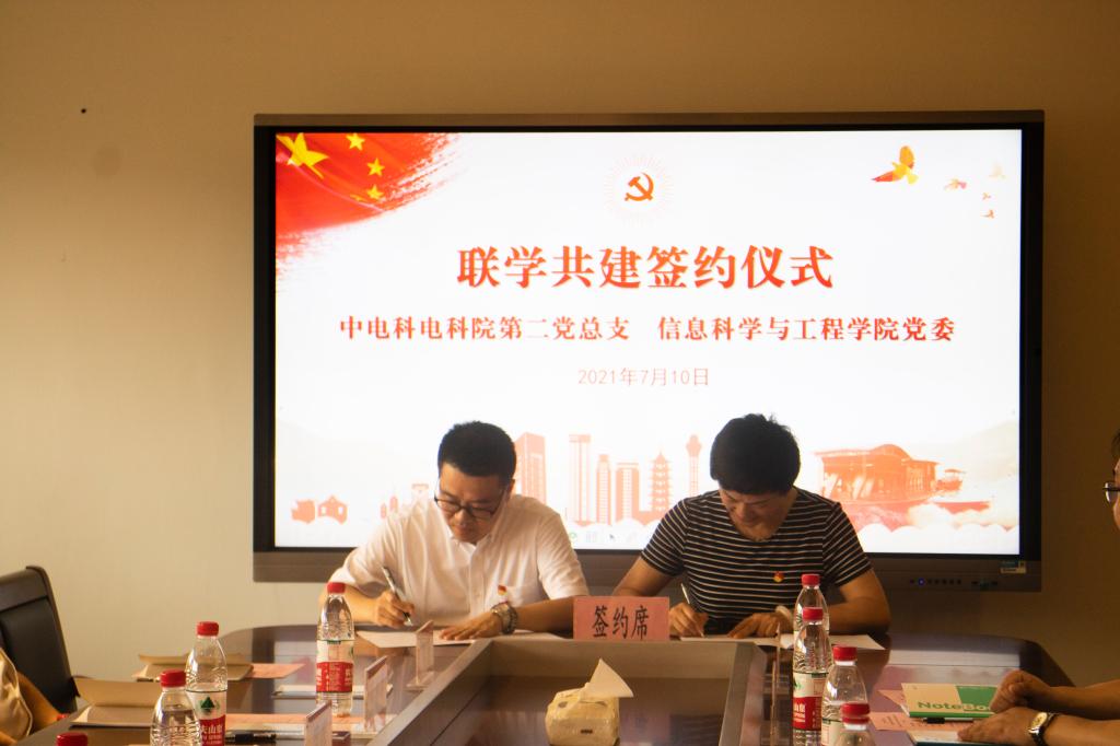 7月10日下午,在我院教工党员之家朱耀东向中电科一行介绍了学院基本情况,谢宏和叶海军就双方党建工作进行了深入交流,并签订了党建结对共建协议。双方表示将进一步着力党的建设,积极探索项目化党建工作新模式,以高度的政治责任感和使命感抓好“结对共建”各项工作,广泛开展技术合作,充分发挥各自优势,努力形成比、学、赶、超的党建工作氛围,进一步激发双方党员担当实干、锐意进取、永远奋斗的干劲和在中心工作、服务大局方面的战斗堡垒作用。最后,大家聆听了bet365