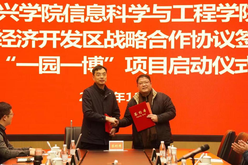 12月2日,学院“一园一博”服务工作站启动及战略合作签约仪式在海宁经济开发区管委会举行。海宁经济开发区党工委副书记、海宁经济开发区管理委员会主任李振、海昌街道党委委员顾煜峰、学院院长朱耀东、党委书记谢宏、学院博士教师代表及企业、平台代表出席活动。