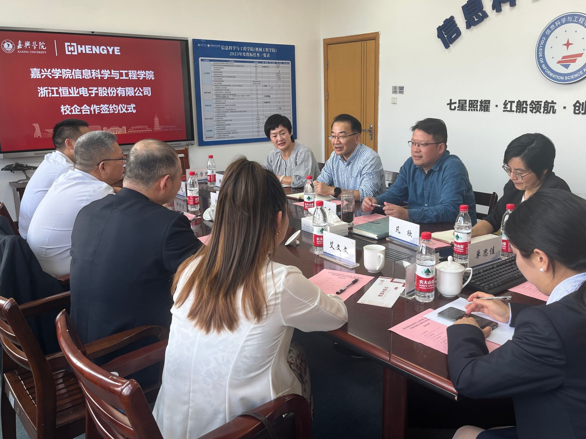 教育发展基金会捐赠陆拾万元人民币用于支持信息学院的人才培养、专业建设。校企双方为“嘉兴学院-恒业电子智能电表检测实验室”揭牌,并围绕校企合作开展、专业相关问题进行探讨,最后,与会人员共同参观“浙江省嘉兴光伏应用技术创新服务平台”。