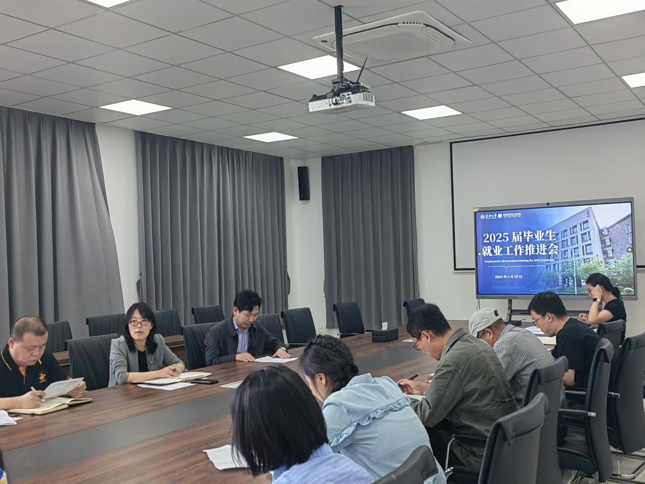 于4月29日召开2025届毕业生就业工作推进会。学院领导班子全体成员出席会议,会议由党总支书记朱奕远主持,学院各党支部书记、研究所、科研平台负责人、班主任、论文指导老师及全体辅导员参会。