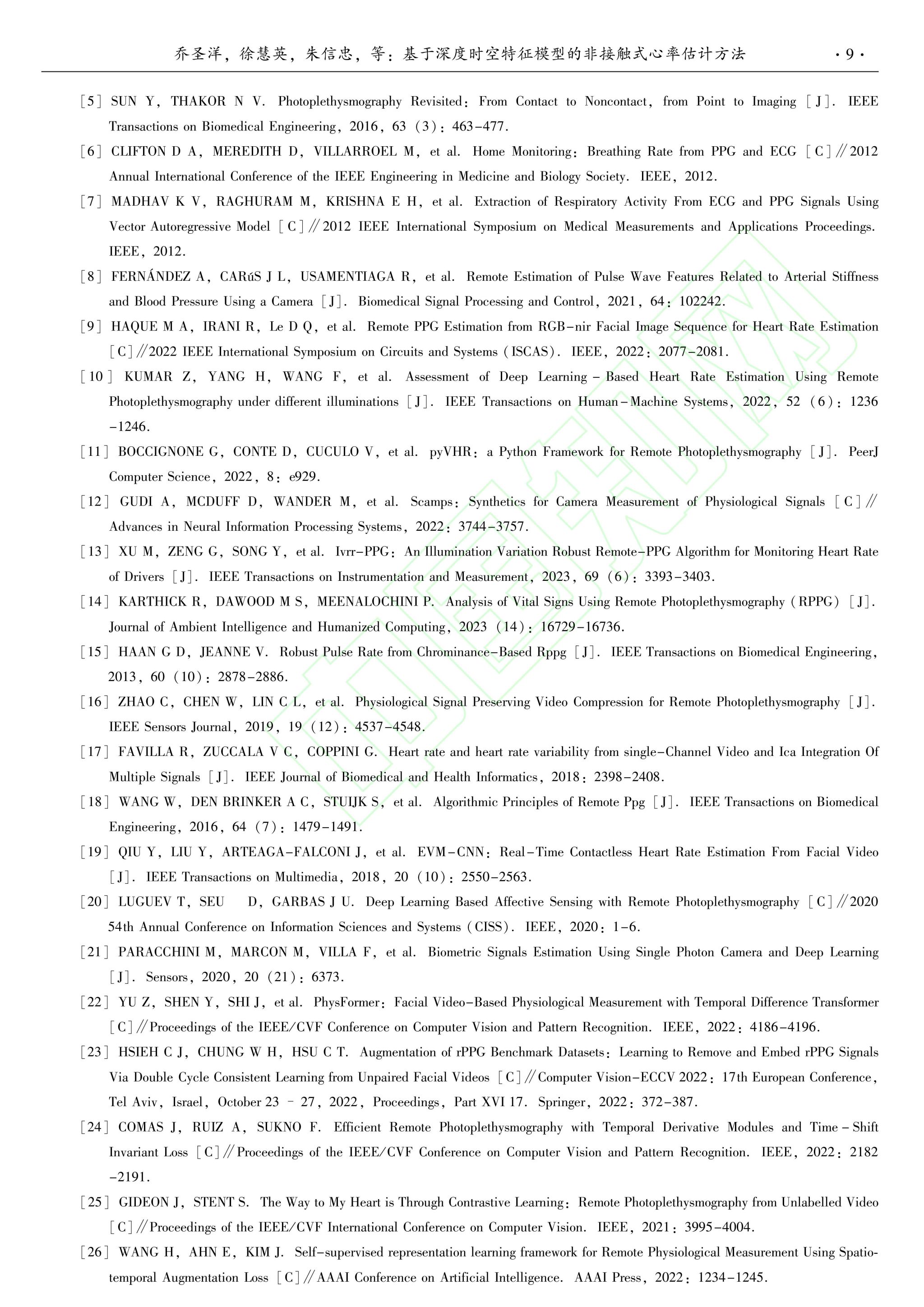 【论文】魏远旺,基于深度时空特征模型的非接触式心率估计方法